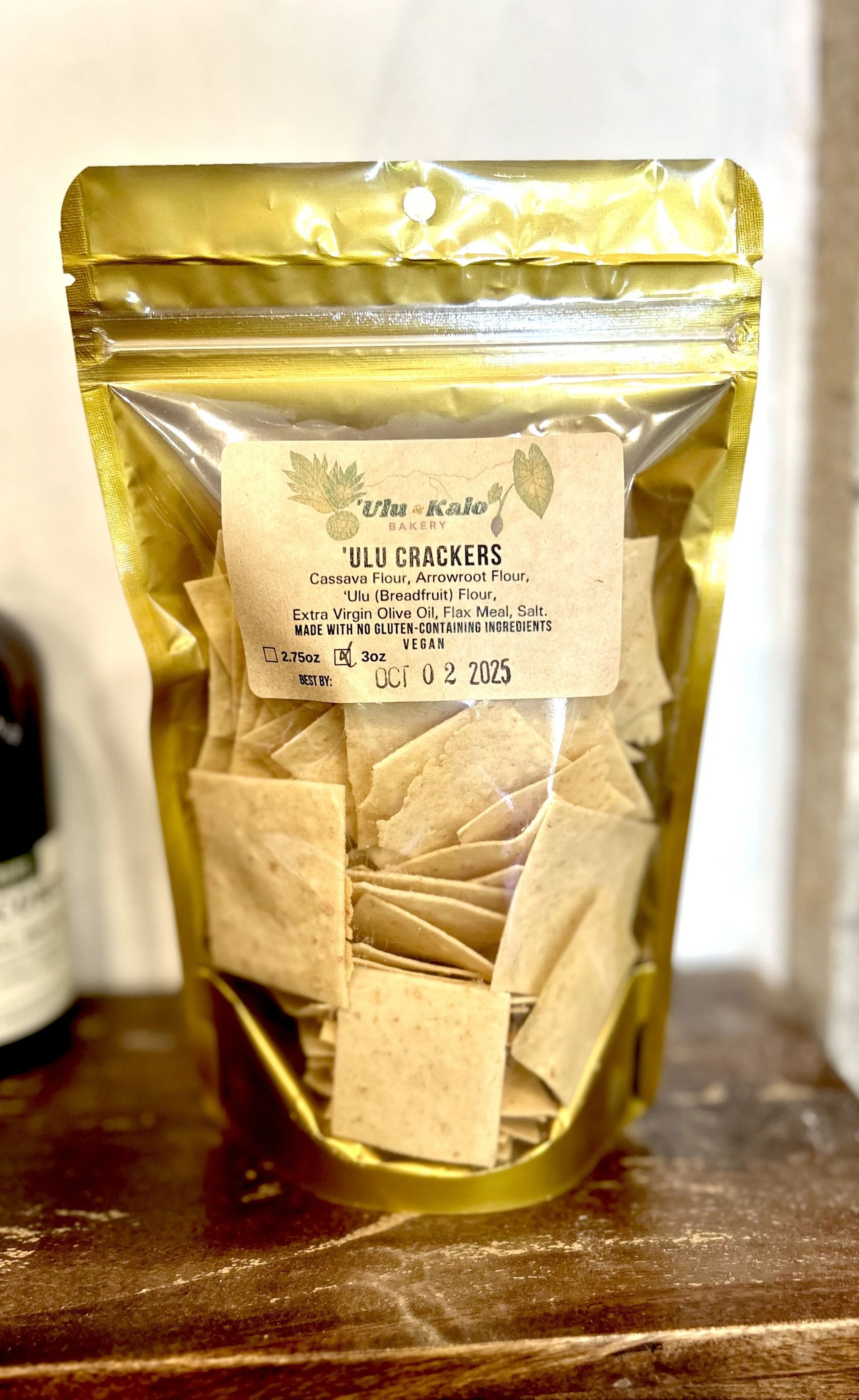 ‘Ulu & Kalo Bakery baking intentionally, to help you eat mindfully Shop No Cake and Cupcake Orders will be taken between 10/02-10/08 Gift Card from $15.00 Plain 'Ulu Crackers $9.00 Double Fudgey Brownie Mix $25.00 Sesame Garlic Crackers $9.00 Coconut & Macadamia Granola from $8.00 Cookies $8.00 Kalo Brownie from $8.00 Banana & 'Ulu Bread $12.00 Muffins $21.00 Cupcakes $70.00 Cake $75.00 'Ulu & Kalo Sticker $4.00